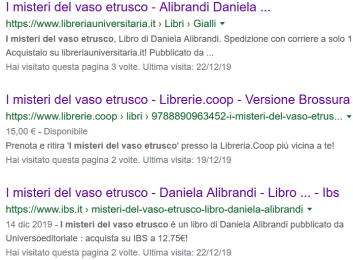 “I Misteri del Vaso Etrusco” è stato inserito nel concorso letterario nazionale Euphronios, che si terrà nell’estate 2020. Una notizia che mi ha fatto un enorme piacere.