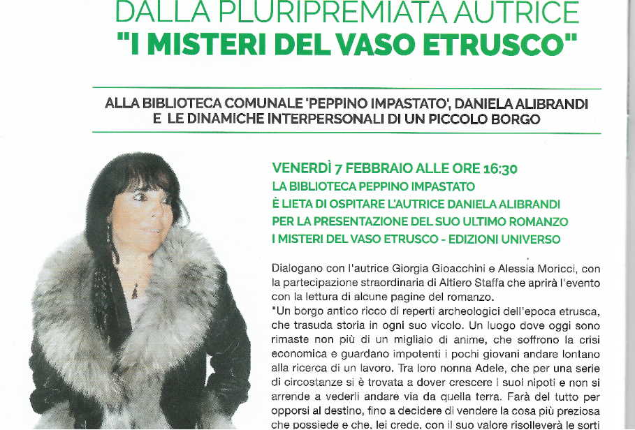 Save the date! Venerdì 7 febbraio alle 16,30 l’incontro presso la Biblioteca Peppino Impastato di Ladispoli con “I Misteri del Vaso Etrusco”.