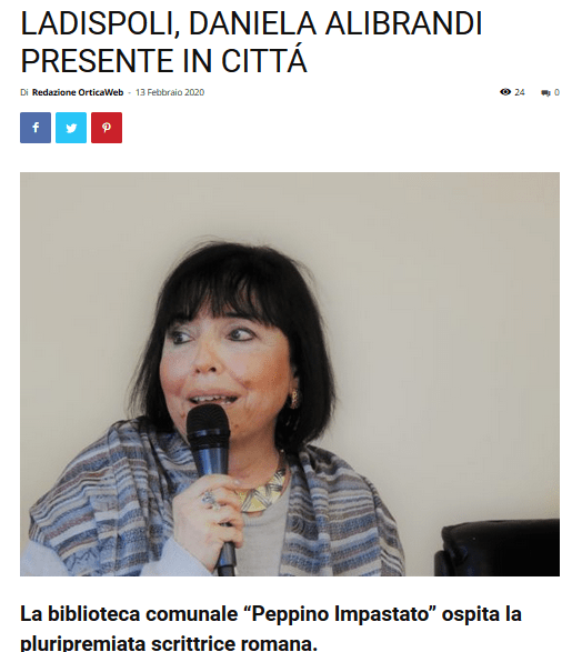 Si è svolta venerdì 7 febbraio a Ladispoli la presentazione del libro “I Misteri del Vaso Etrusco” di Daniela Alibrandi. Edito da Edizioni Universo è l’ottavo romanzo dell’autrice di best seller noir, che questa volta a sorpresa si tinge di rosa.