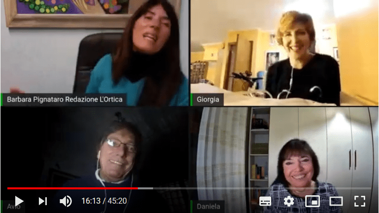 L’evento è stato organizzato da Ortica Web, a cui va il mio ringraziamento per aver ospitato la diretta. Insieme a me erano la bravissima giornalista Barbara Pignataro, che ha descritto i contenuti e le particolarità del romanzo stimolando una conversazione fluida e interessante, la volontaria responsabile della Biblioteca Marina di Cerveteri nonchè mia assidua lettrice Giorgia Gioacchini, che con un rapido e significativo excursus ha descritto la mia attività letteraria ormai decennale, e il grande attore Avio Focolari, che ha dato vita ad alcune pagine del romanzo con la sua voce calda e inconfondibile
