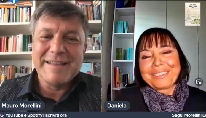 Alcuni momenti della diretta, in alto a tu per tu con l’editore Mauro Morellini, e poi con il mio romanzo “Viaggio a Vienna”, pubblicato da Morellini Editore nell’ottobre 2020. Ho potuto raccontare quanta emozione ho provato nello stringere finalmente il romanzo tra le mani, visto che sarebbe dovuto uscire nel marzo 2020, quando il mondo si è fermato per la pandemia. E ne ho potuto raccomandare la lettura a chi ama viaggiare nell’animo umano e nelle affascinanti atmosfere viennesi. Una giornalista piena di vita e di entusiasmo, Anna, si trova nello stato di coma per un fatto misterioso. Chi le vuole bene, nell’intento di svegliarla, le ricorda fatti salienti e persone importanti della sua vita. Lei sembra inerte, persa. Invece afferra i ricordi come funi che la possono salvare dal baratro sul quale si sente sospesa. Il ricordo che è preminente in lei è quello del suo viaggio a Vienna. Un mistero inconfessabile si cela in quella memoria e sarà il tassello che definirà l’intricato puzzle. Una trama che prende dalle prime righe e porta all’ultima pagina con un finale del tutto imprevedibile. Il romanzo è disponibile in edizione cartacea e in ebook in tutte le librerie fisiche e online e al sito dell’editore https://www.morellinieditore.it/scheda-libro/daniela-alibrandi/viaggio-a-vienna-9788862987646-579361.html