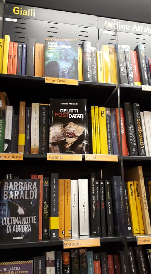 Puntualissima l’immagine inviatami da una lettrice di Roma. “Delitti Postdatati”, Premio Poliziesco Gold 2020, è in bella mostra sullo scaffale di Feltrinelli ed è presente in tutte le librerie dal 24 giugno. Fa sempre un bellissimo effetto vedere il romanzo su uno scaffale tanto prestigioso, attorniato da titoli e nomi illustri. Il libro è disponibile in edizione cartacea e in ebook nelle librerie fisiche e online, tra cui tengo molto a evidenziare L’Enoteca Letteraria in Via San Giovanni in Laterano a Roma. E’ proprio lì infatti che ci ritroveremo domenica 11 luglio alle ore 18:00 per la prima presentazione nazionale del romanzo. A Piazza San Clemente, angolo Via San Giovanni in Laterano, nell’ambito della rassegna letteraria Libri in Strada, organizzata da Enoteca Letteraria con il patrocinio del Municipio I del Comune di Roma!