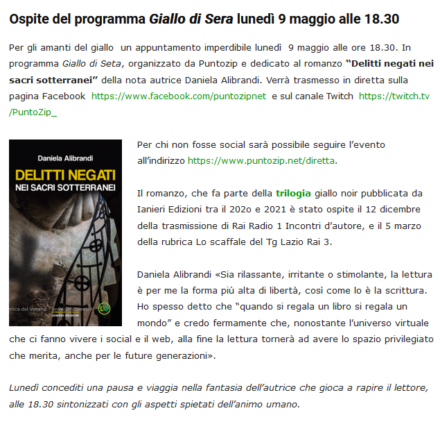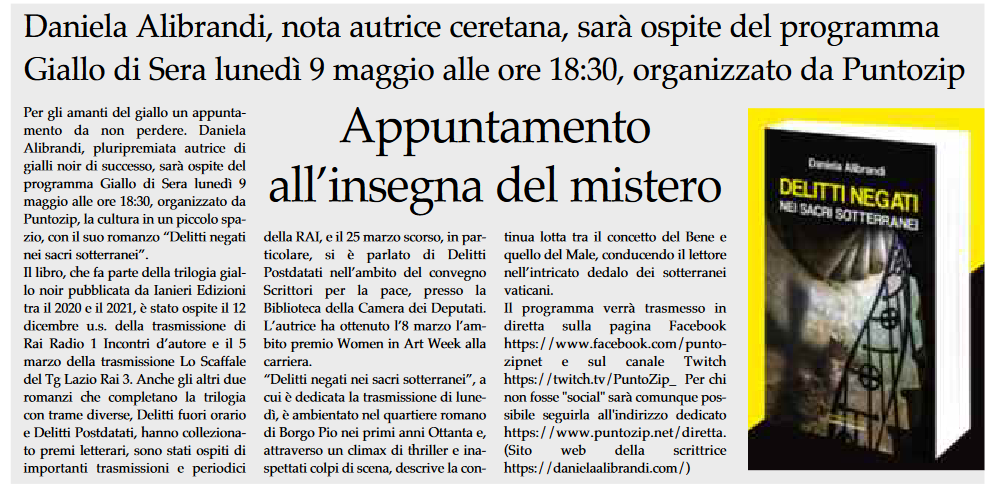 Dal TgLazio RAI 3, “Delitti negati nei sacri sotterranei” a Lo Scaffale di Rossana Livolsi: