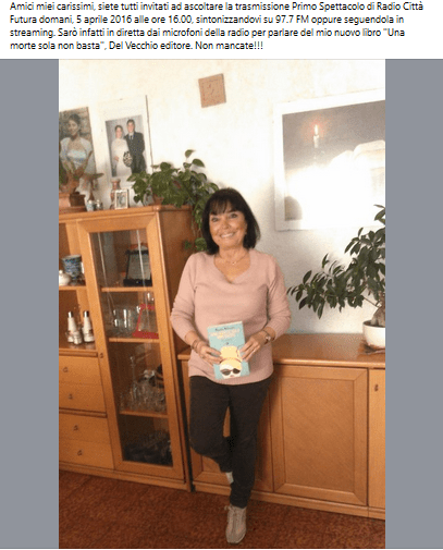 Accadeva sette anni fa, l’intervista di Federica Manzitti per la trasmissione Primo Spettacolo di Radio Città Futura. Allora avevo scritto il mio quinto romanzo “Una morte sola non basta” (Del Vecchio Editore). Presentato alla biblioteca della Camera dei Deputati è stato poi inserito nel catalogo di prestigiose biblioteche universitarie statunitensi in edizione italiana. Anche a distanza di anni questo romanzo non smette di interessare e sosrprendere.