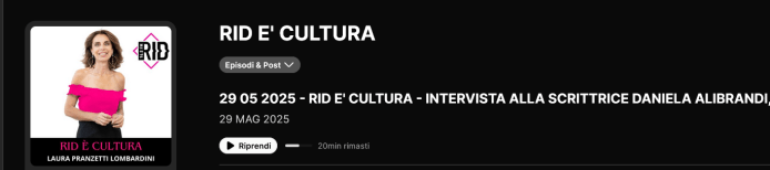 E sempre, quando termina un incontro così interessante e intenso, si ha la sensazione di aver vissuto un’esperienza unica e indimenticabile. Ringrazio Radio RID, per aver ospitato questa significativa anteprima, la straordinaria Laura Pranzetti Lombardini e il suo magnifico staff.