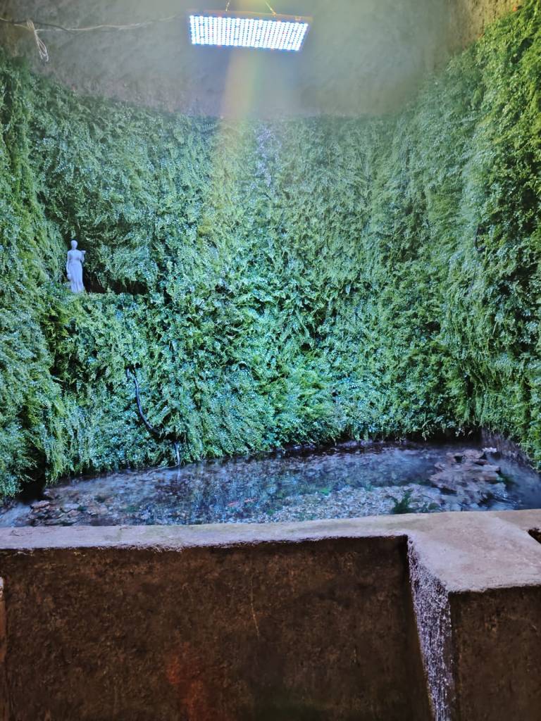 Abbiamo scoperto anche l’esistenza di una camera di “filtraggio” a cui si accede a metà del percorso, grazie alla quale le acque sono depurate naturalmente, perfino dal calcare che ha creato delle suggestive stalattiti sul soffitto e sulle pareti.