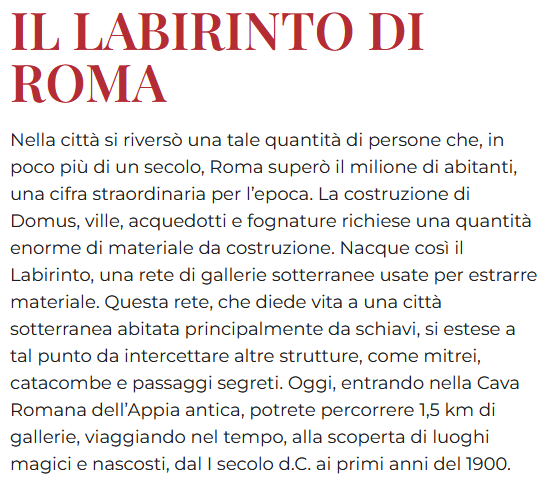 Il Labirinto di Roma, conosciuto anche come L’antica città degli schiavi
