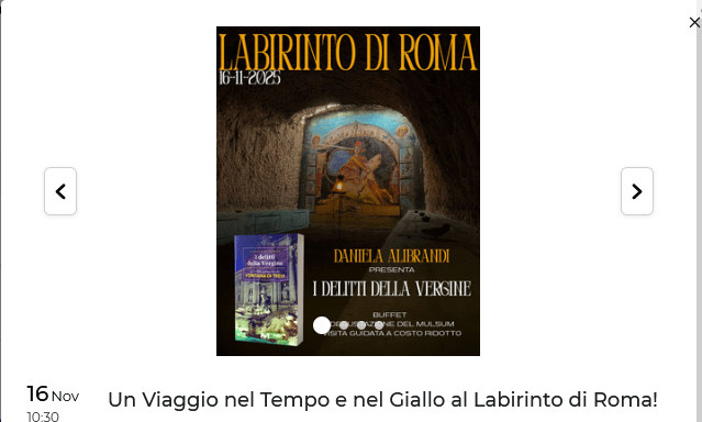 Per chi desidera proseguire la straordinaria esperienza ed effettuare anche la visita guidata potrà prenotarsi al sito di Sotterranei di Roma. Informazioni al seguente link : https://www.sotterraneidiroma.it/it/tour/ all’evento: Un Viaggio nel Tempo e nel Giallo al Labirinto di Roma!