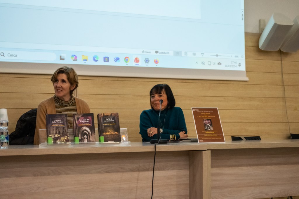 Nell’atmosfera che si è creata non è stato difficile spiegare perchè ho ambientato questo romanzo in un monastero del Mugello, quando solitamente amo immergermi nel mondo sotterraneo romano. Infatti, quando ho perso mio marito, ho avuto un periodo difficile, durante il quale non riuscivo più ad abbandonarmi a nuove ispirazioni. Pensai di poter ritrovare me stessa in un monastero, e decisi di trascorrere un periodo tra quelle mura. Immersa in quella atmosfera silenziosa, spirituale, ho iniziato a scrivere di nuovo. E’ per questo che ho sempre considerato “I delitti del Mugnone” il libro della mia rinascita.