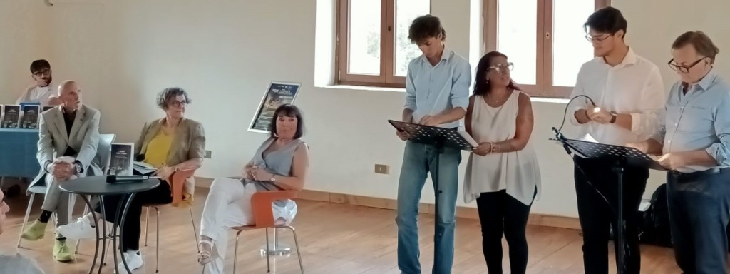 E non posso non ringraziare il regista e attore Agostino de Angelis insieme agli attori della sua Academy for Theatre Eleonora Pini, Aurelia Realgar, Riccardo Frontoni, Riccardo Dominici, Stefano Ercolani, che si sono avvicendati per dare vita alle pagine più salienti e drammatiche del romanzo, risolvendo spesso gli inconvenienti degli ultimi minuti, che nell’organizzazione degli eventi non mancano mai