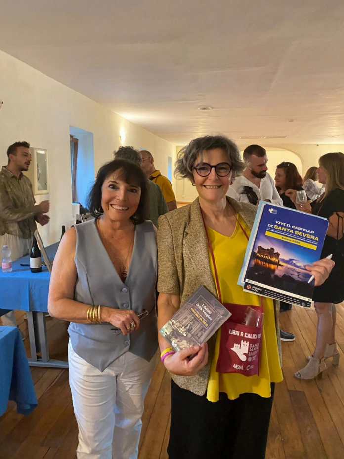 Una gradevolissima sorpresa è stata l’inaspettata visita della nota giornalista Francesca Lazzeri, dalla quale ho avuto l’onore di essere presentata nell’appuntamento presso il Castello di Santa Severa lo scorso 13 luglio, nell’ambito della prestigiosa rassegna Libri e Calici. Un momento particolarmente significativo, che desidero ricordare con gratitudine, anche perchè ritagliato dai suoi numerosi e importanti impegni professionali. La sua presenza ha arricchito l’evento, così come le belle parole che ha saputo dire su di me e sui miei romanzi.