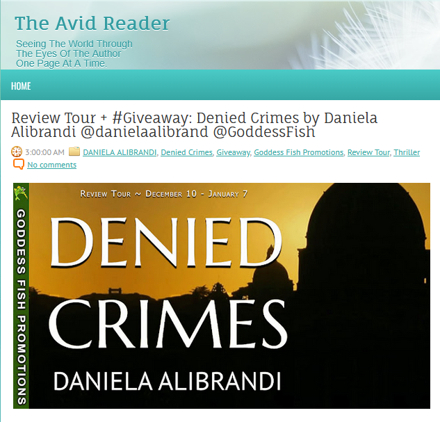 Posto di seguito con molto piacere i link e le recensioni che sono state date a “Denied Crimes” tradotte in italiano. Mi ha dato grande soddisfazione non solo ricevere valutazioni a 4/5 stelle, ma anche notare come sia stato apprezzato il mio stile multidimensionale, unico nel genere a trasportare il lettore attraverso diversi piani narrativi e palpabili atmosfere, nell’intreccio che caratterizza una lettura irrinunciabile fino all’ultima pagina.